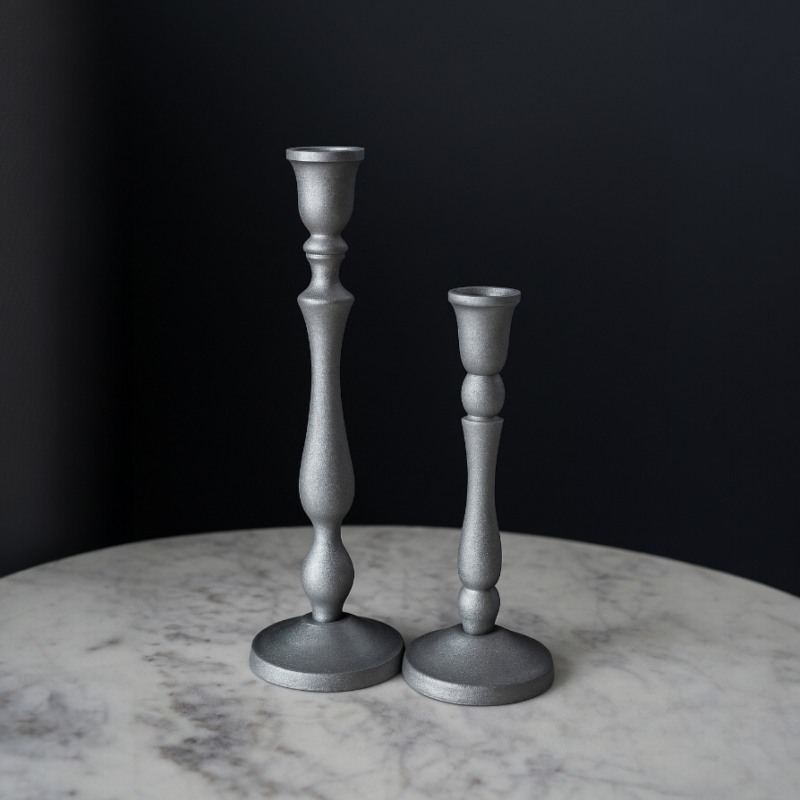 Upgrade your home styling with this elegant Modern Silver Metal Candle Holder Set. Featuring a sleek turned design with a premium matte silver finish, this set of 2 taper candle stands adds a classy and contemporary touch to your living room, dining table, or console décor.