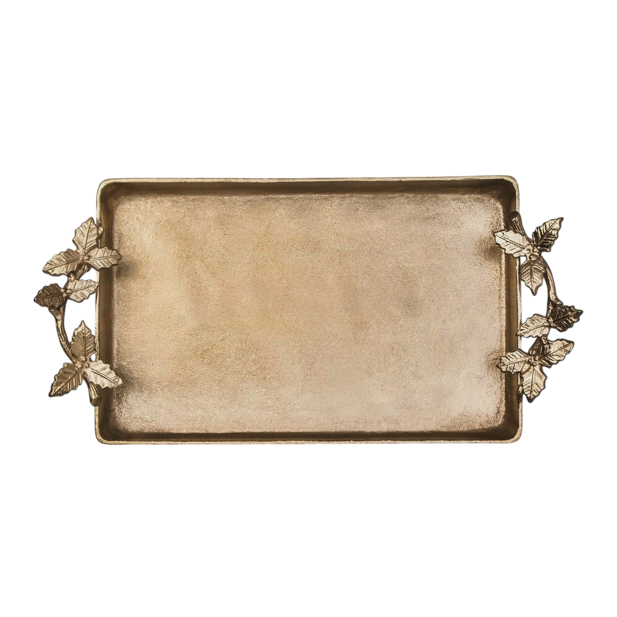 • Product Name: Gold Metal Serving Tray with Leaf Handles
