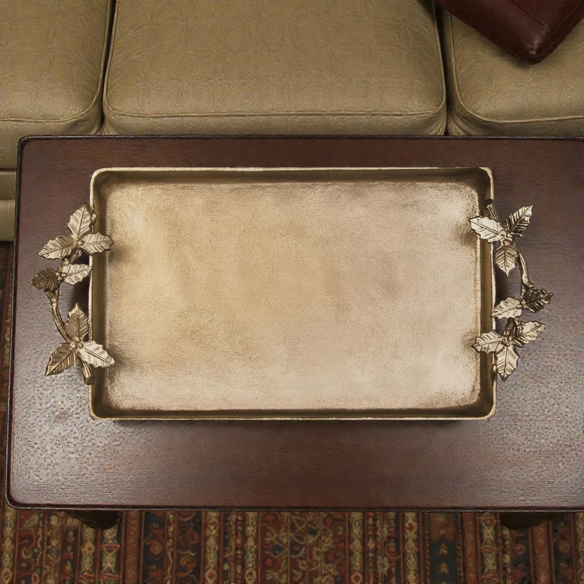 Home Serving Trey Gold Metal Serving Tray with Leaf Handles
