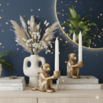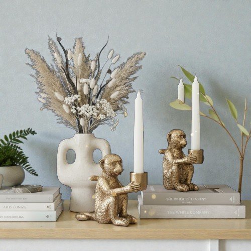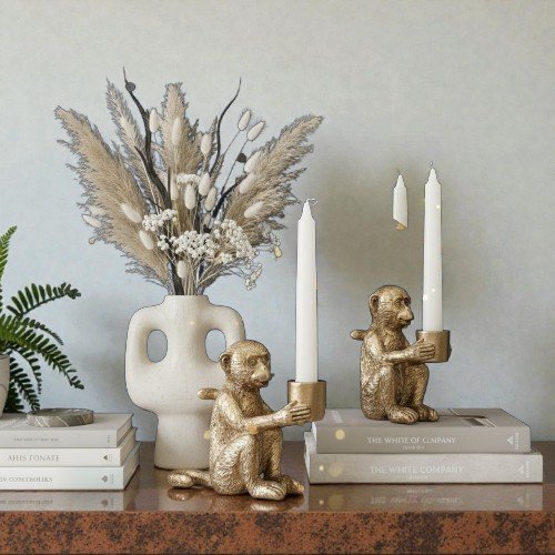 Add a touch of artistic elegance to your home with this Golden Monkey Candle Holder Decorative Showpiece. Designed with fine detailing and a rich gold finish, this unique monkey figurine doubles as both a décor accent and a functional candle holder.