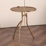 The artistic tripod legs give it a sculptural appeal while ensuring stability and durability. The brushed metallic gold finish enhances its luxurious charm, making it an ideal fit for modern apartments, premium interiors, and designer spaces.