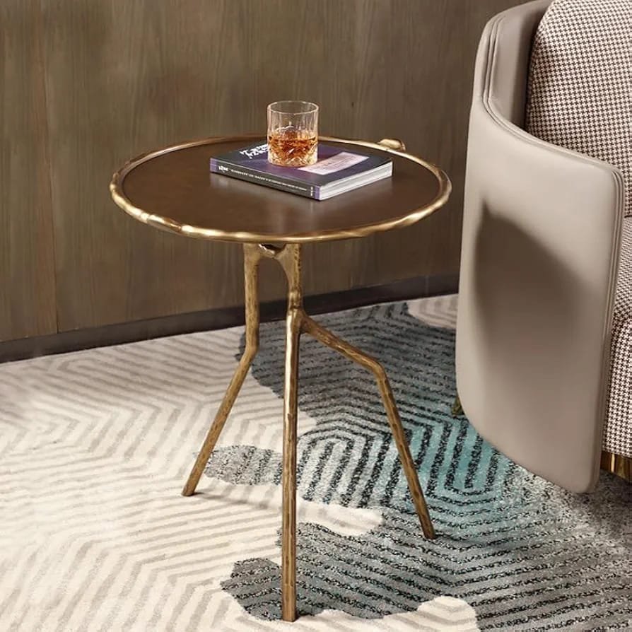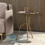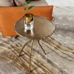 The Golden Tripod Luxe Side Table is a perfect combination of simplicity and sophistication. Its round tray-style tabletop provides a practical yet elegant surface for placing coffee mugs, books, decorative accents, or evening drinks.