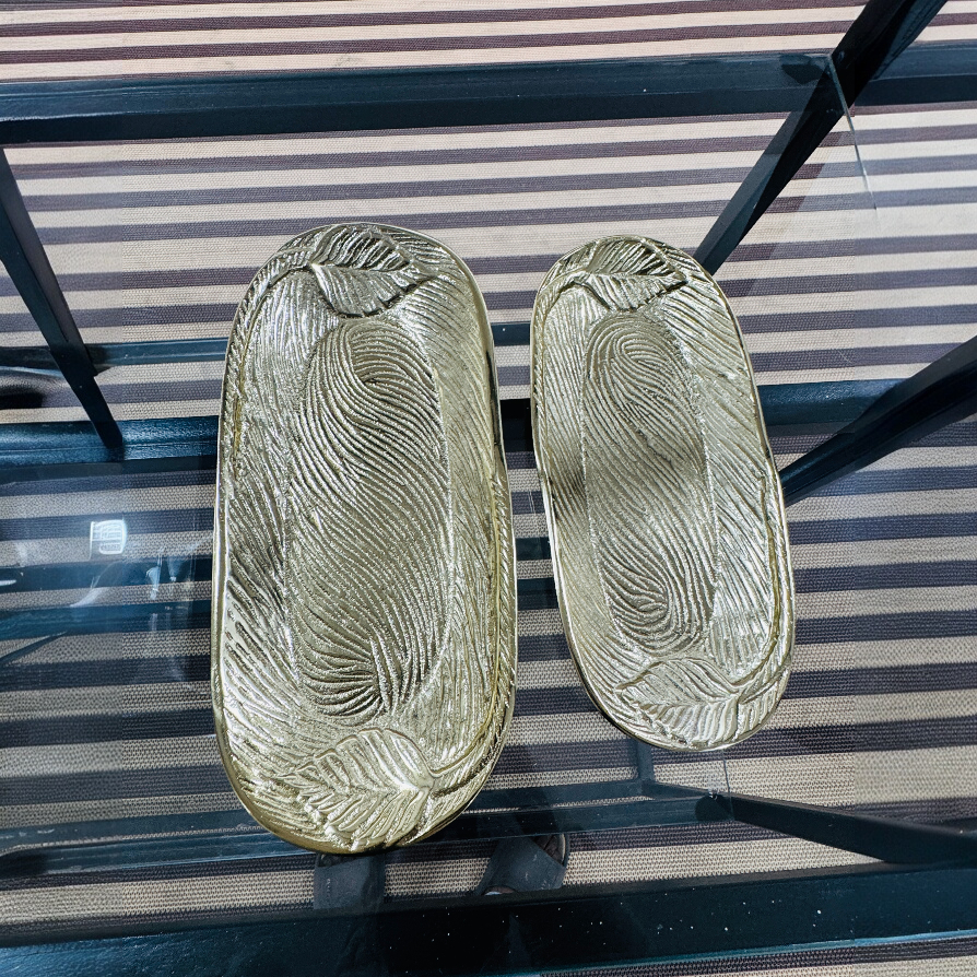 Upgrade your home décor with this elegant Golden Leaf Texture Decorative Tray Set. Designed with a beautiful feather-inspired texture and finished in premium gold polish, these trays are perfect for serving and stylish display.