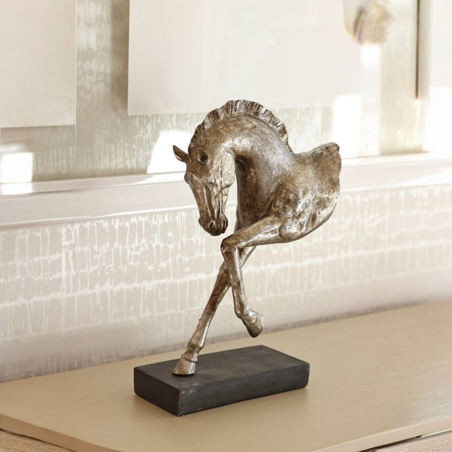 Elevate your interior styling with this Modern Silver Horse Figurine. Featuring a sleek artistic design and metallic finish, this statement décor piece adds sophistication and movement to any space.