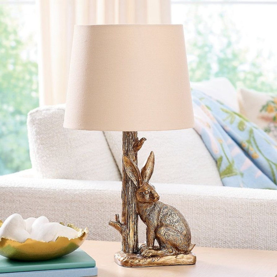 Add warmth and charm to your interiors with this beautifully crafted Rabbit Table Lamp. Featuring a detailed rabbit sitting beside a tree trunk, this lamp brings a peaceful countryside feel into your living space. Its artistic design makes it both a decorative accent and a functional lighting piece.